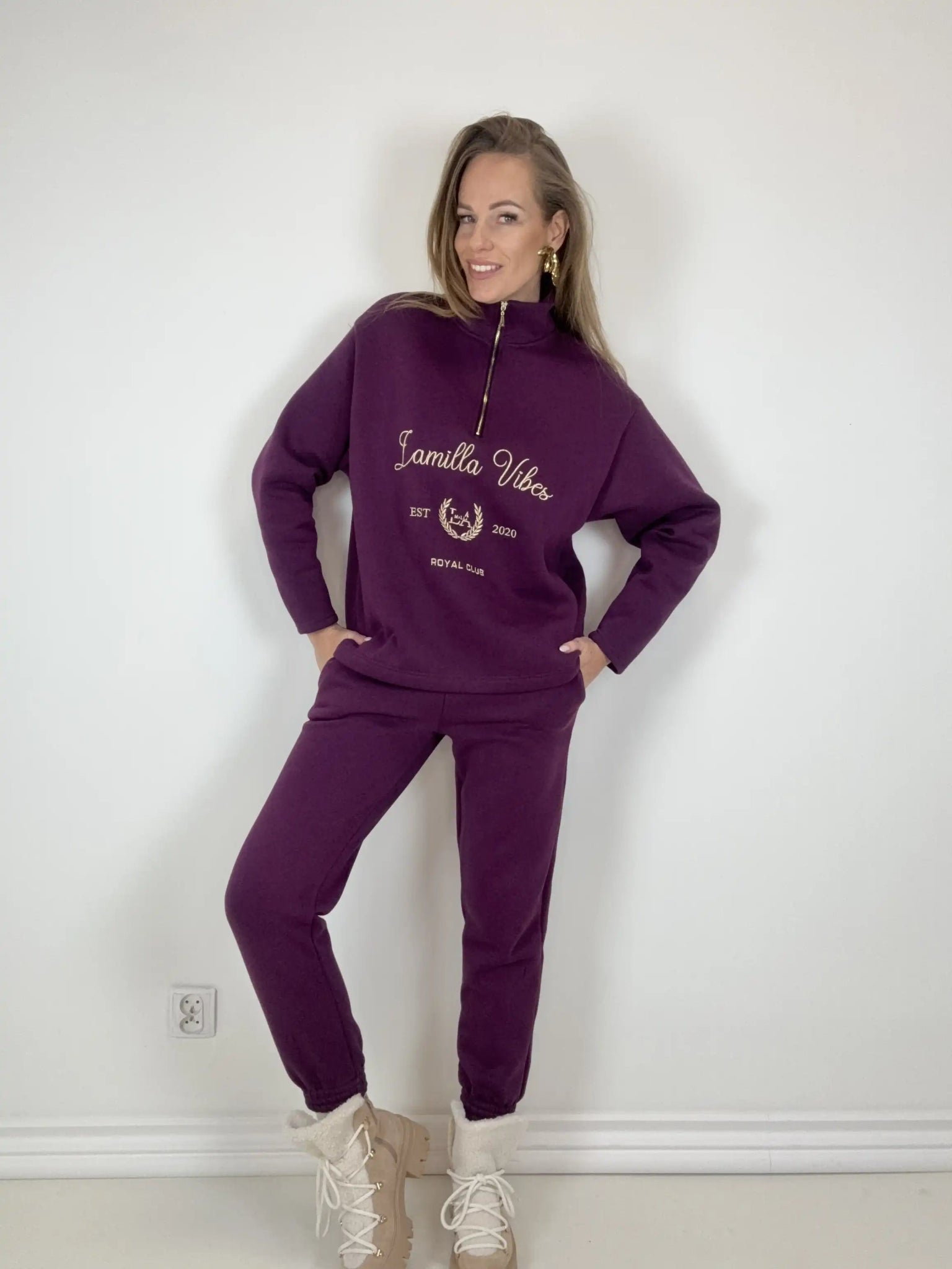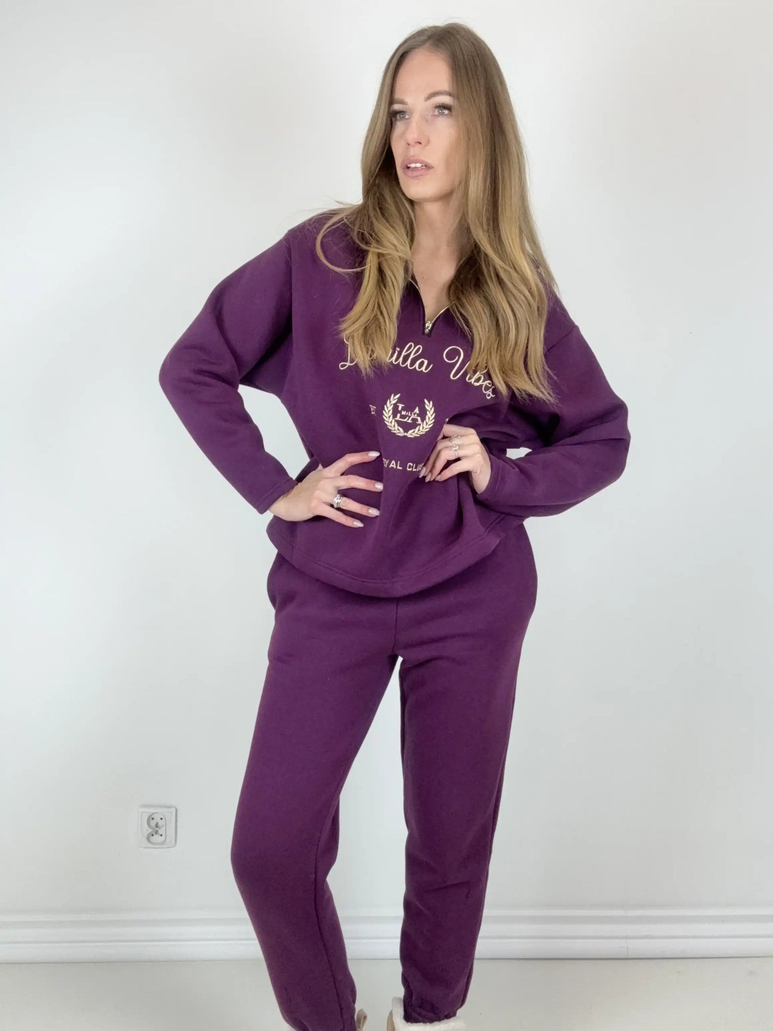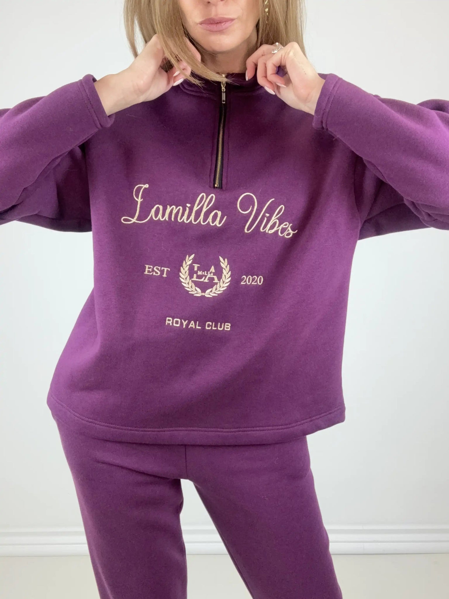 Stylowy i niezwykle wygodny komplet dresowy Royal Club to idealny wybór na każdą okazję – od leniwego poranka w domu, przez aktywny dzień w biegu, aż po swobodne, casualowe wyjścia ze znajomymi. Zestaw został wykonany z wysokiej jakości bawełny, która gwarantuje wyjątkowy komfort noszenia przez cały dzień. Oversize’owa bluza z półgolfem zapinanym na zamek łączy w sobie nowoczesny design i funkcjonalność, oferując wygodę na najwyższym poziomie. Luźny krój gwarantuje pełną swobodę ruchów. Do kompletu dołączone są spodnie z elastyczną talią, która doskonale dopasowuje się do sylwetki. Nogawki zakończone ściągaczami nadają całości sportowego, modnego wyglądu, a jednocześnie sprawiają, że spodnie świetnie układają się na każdej figurze. Materiał jest ocieplany od wewnątrz.