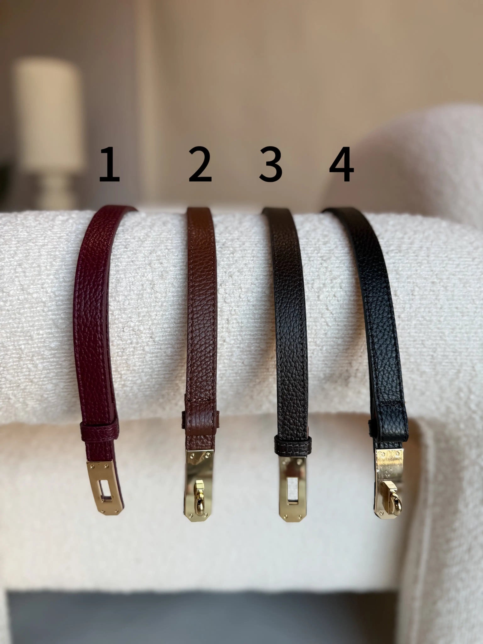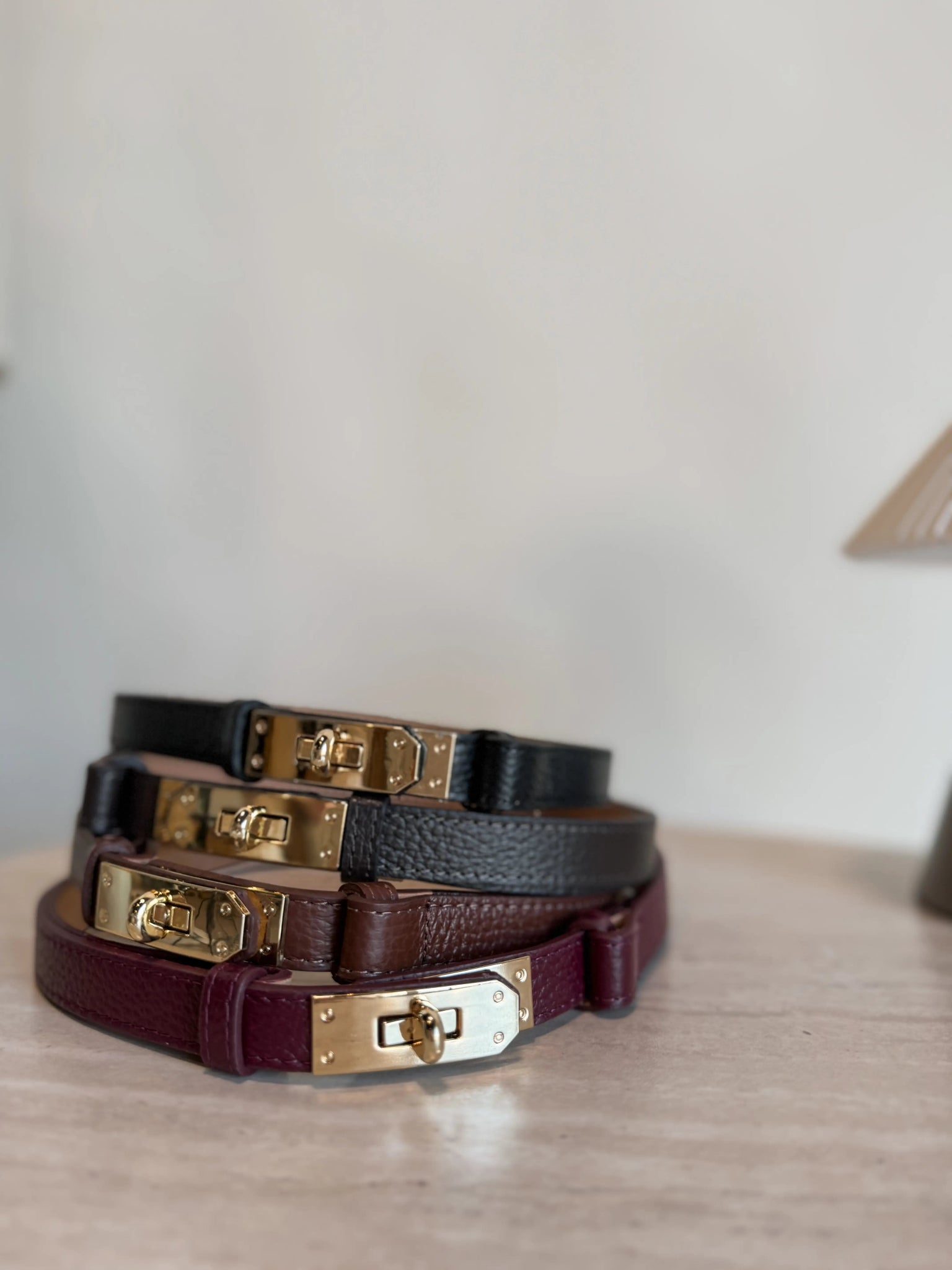 Pasek Terii wykonany z wysokiej jakości, gładkiej skóry naturalnej to ponadczasowy dodatek, który doda elegancji każdej stylizacji. Prosty, dopracowany design w połączeniu ze złotą klamrą tworzy stylowy akcent zarówno do codziennych, jak i bardziej formalnych zestawów.