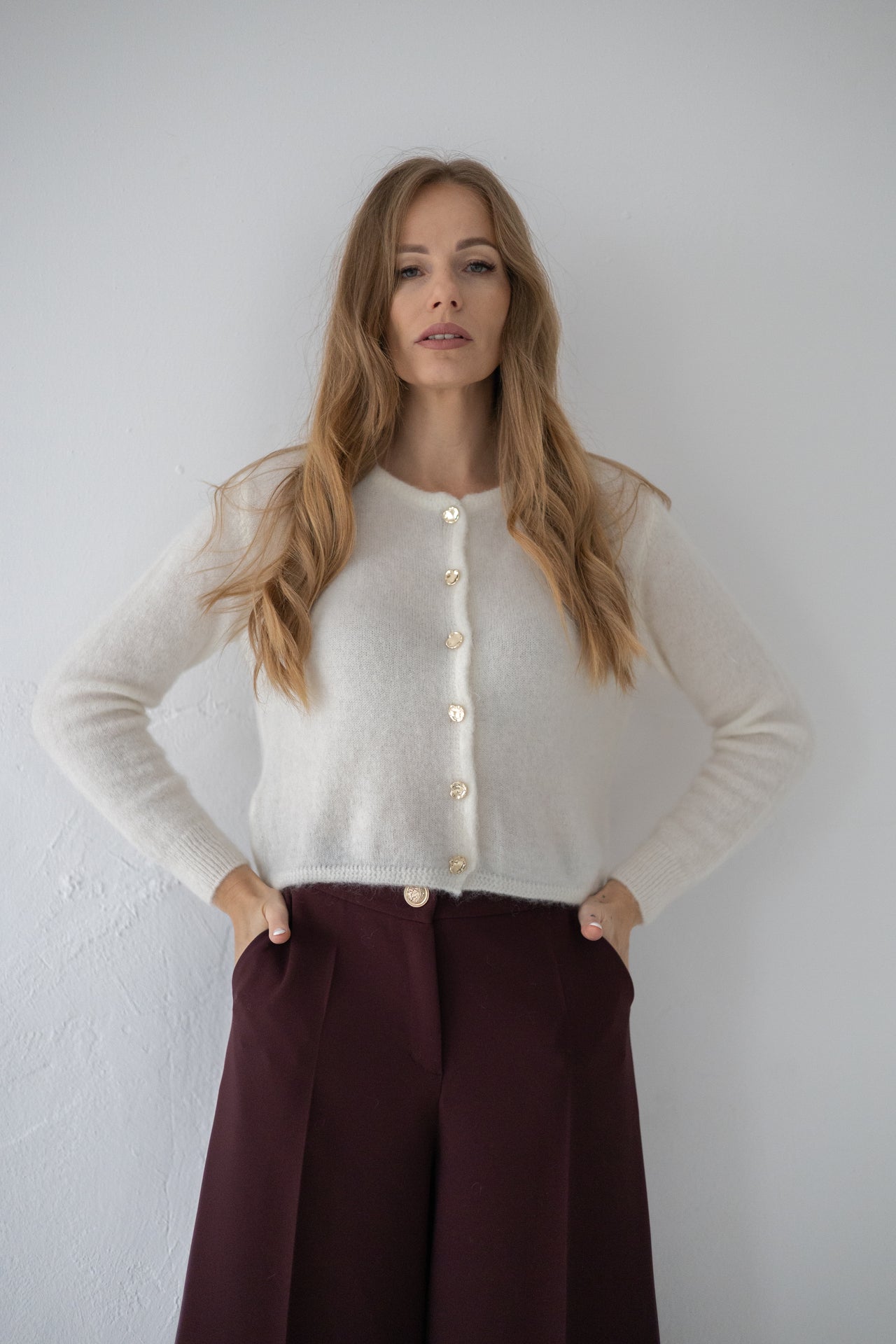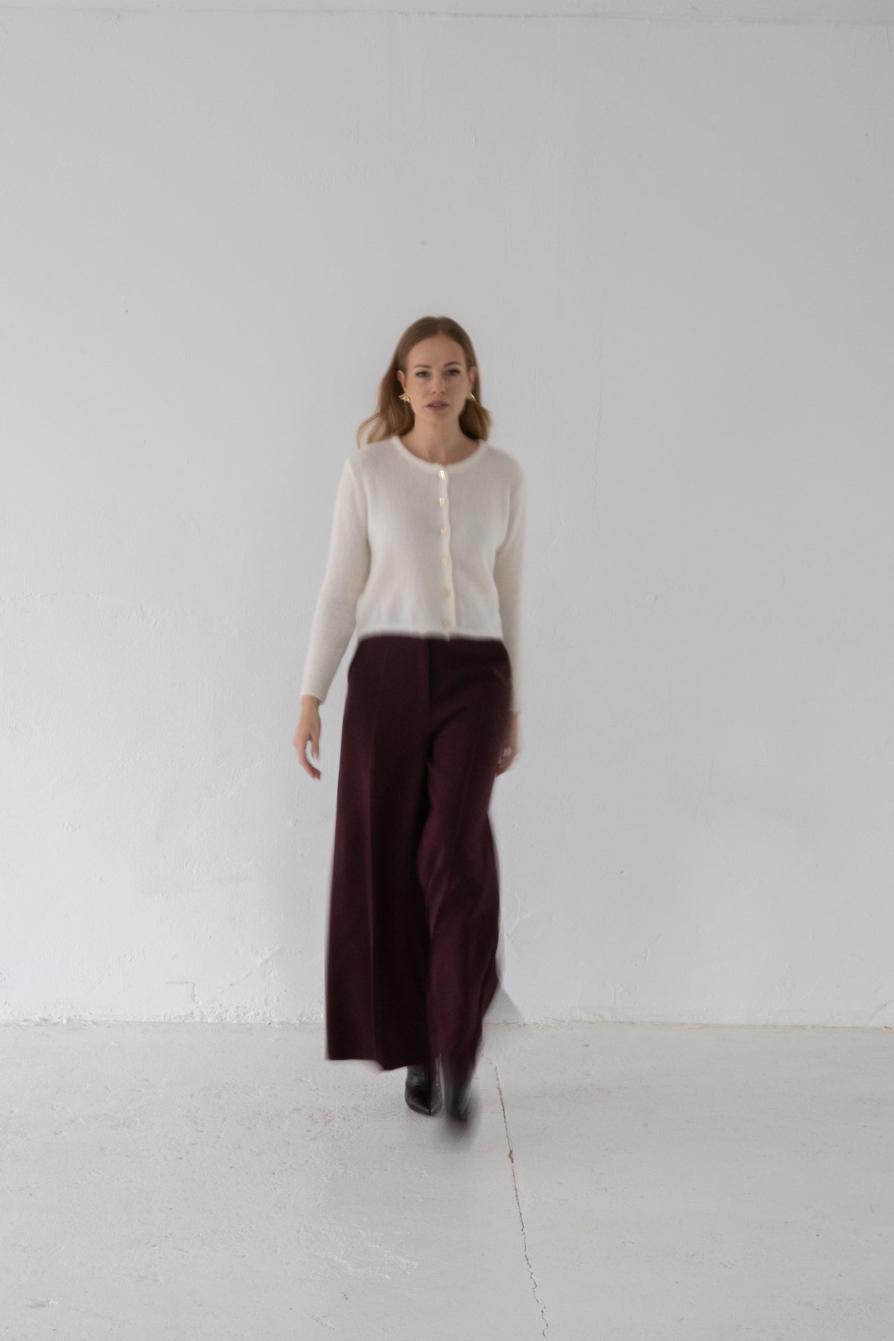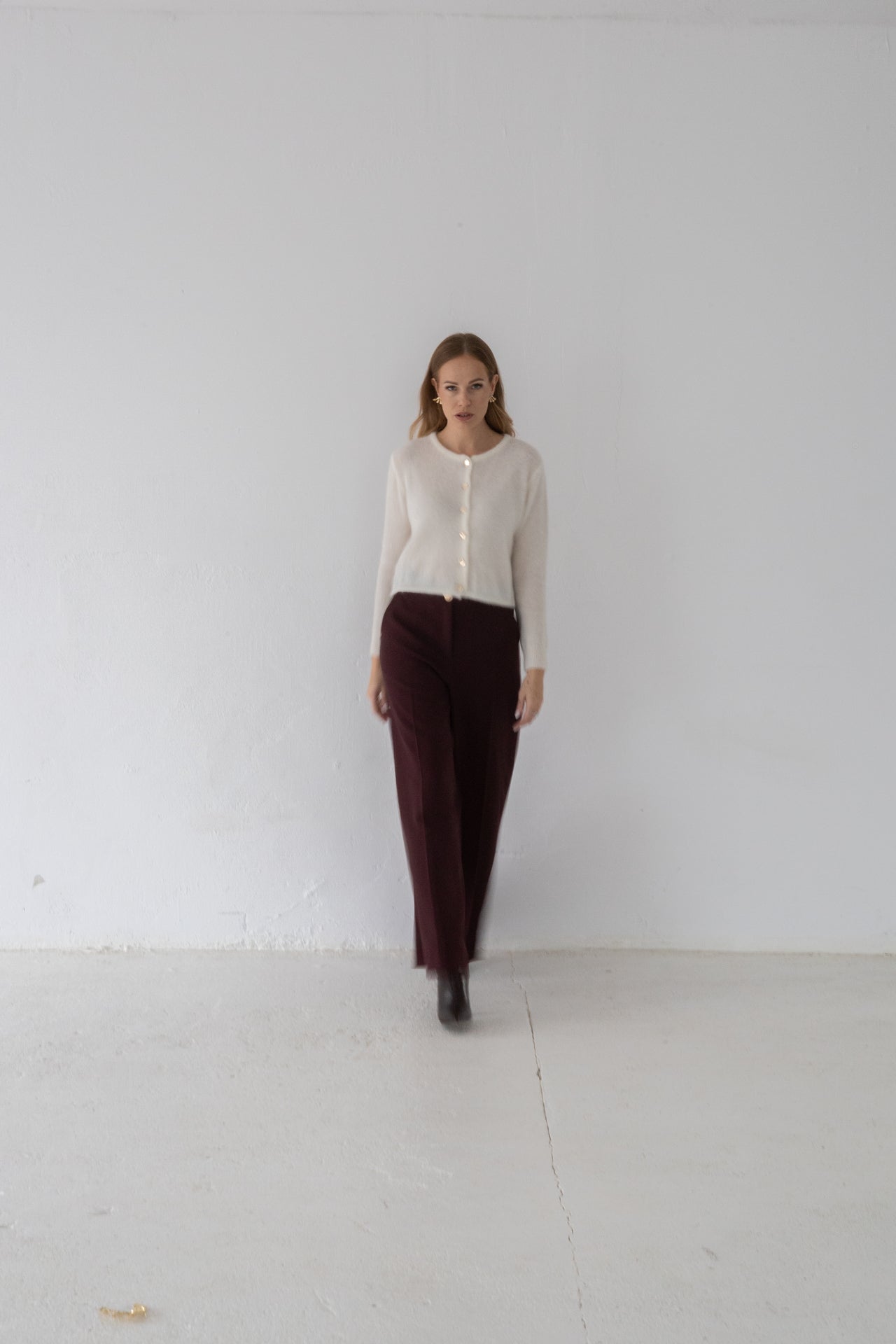Stylowe, długie spodnie Bridget o szerokim kroju to idealne połączenie elegancji i wygody. Wykonane z gładkiego materiału, pięknie układają się na sylwetce, a wysoki stan podkreśla talię i optycznie wydłuża nogi. Złoty, ozdobny guzik dodaje im klasycznego, kobiecego charakteru. Model Bridget sprawdzi się zarówno w stylizacjach do pracy, jak i na wieczorne wyjście. Wystarczy połączyć je z koszulą, swetrem lub dopasowanym topem, aby stworzyć elegancki i nowoczesny look.