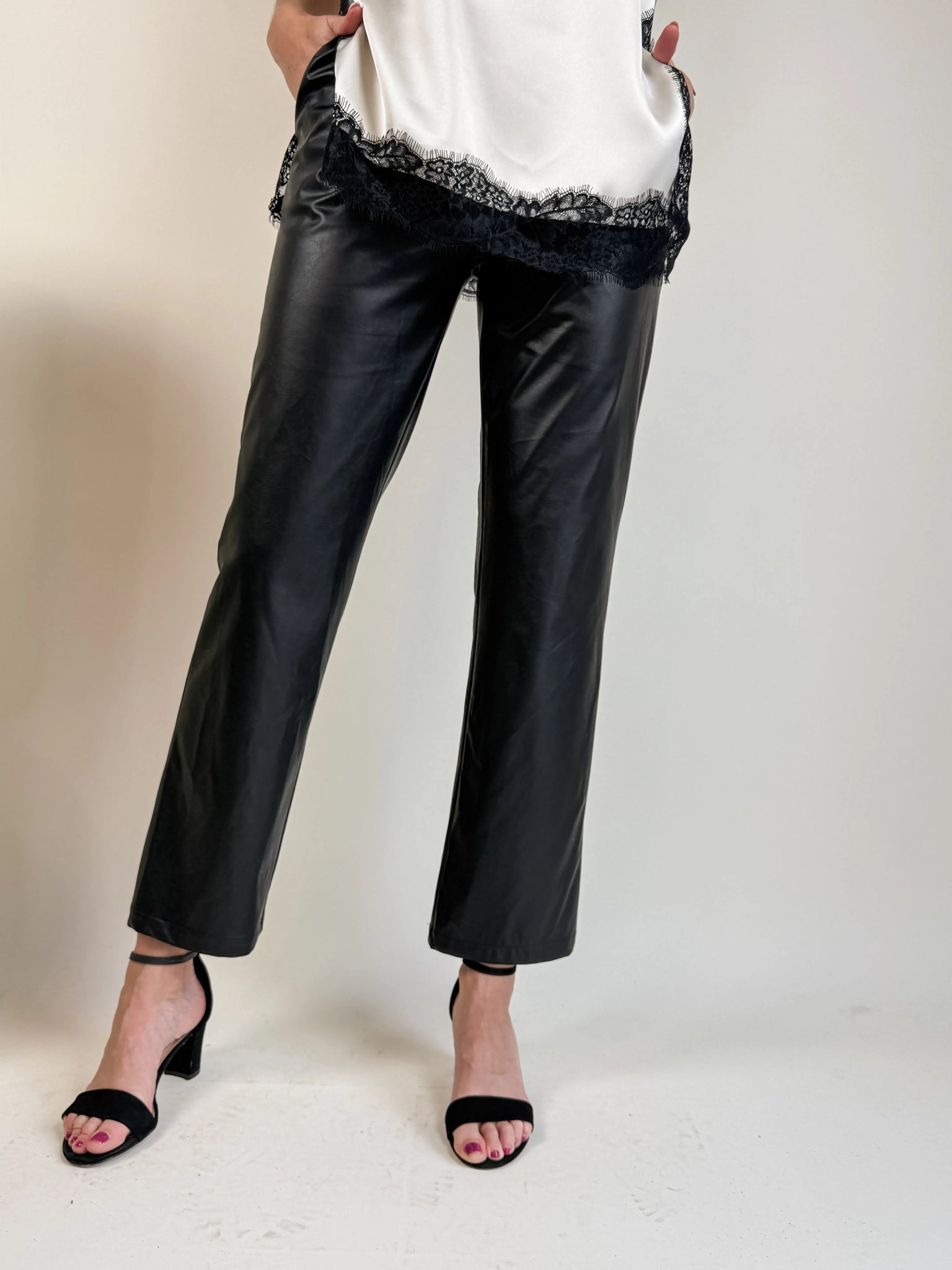 SPODNIE LEA Z EKOSKÓRY CZARNE