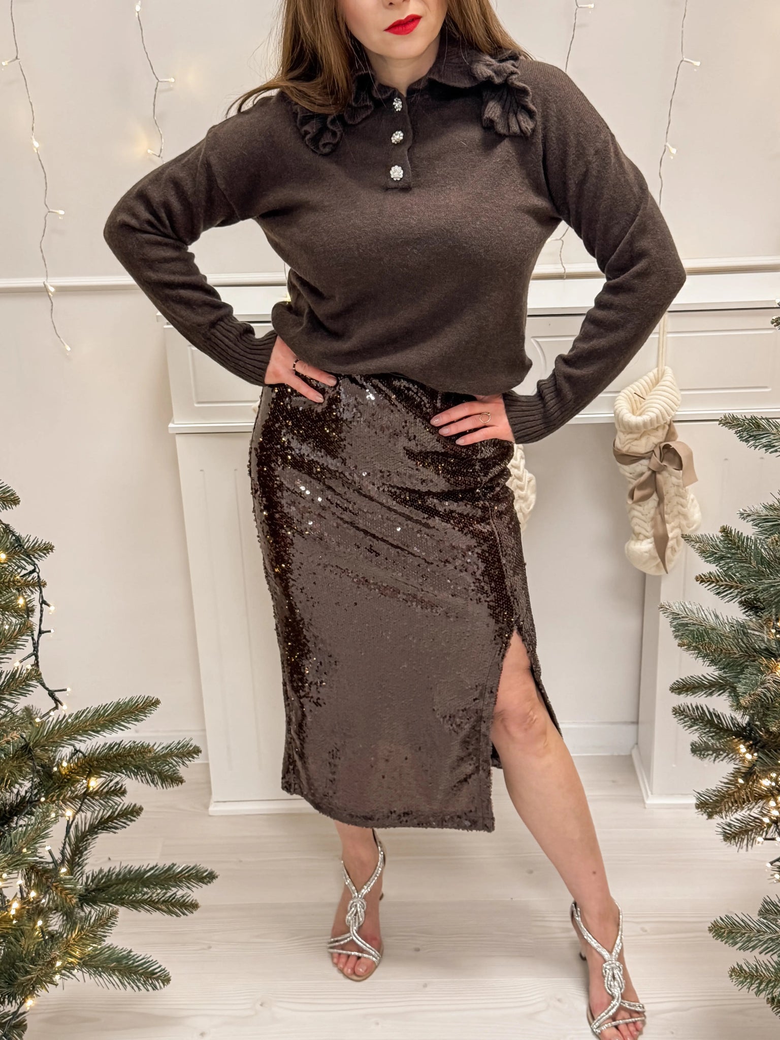 SPÓDNICA PARTY CEKINOWA CZEKOLADOWA