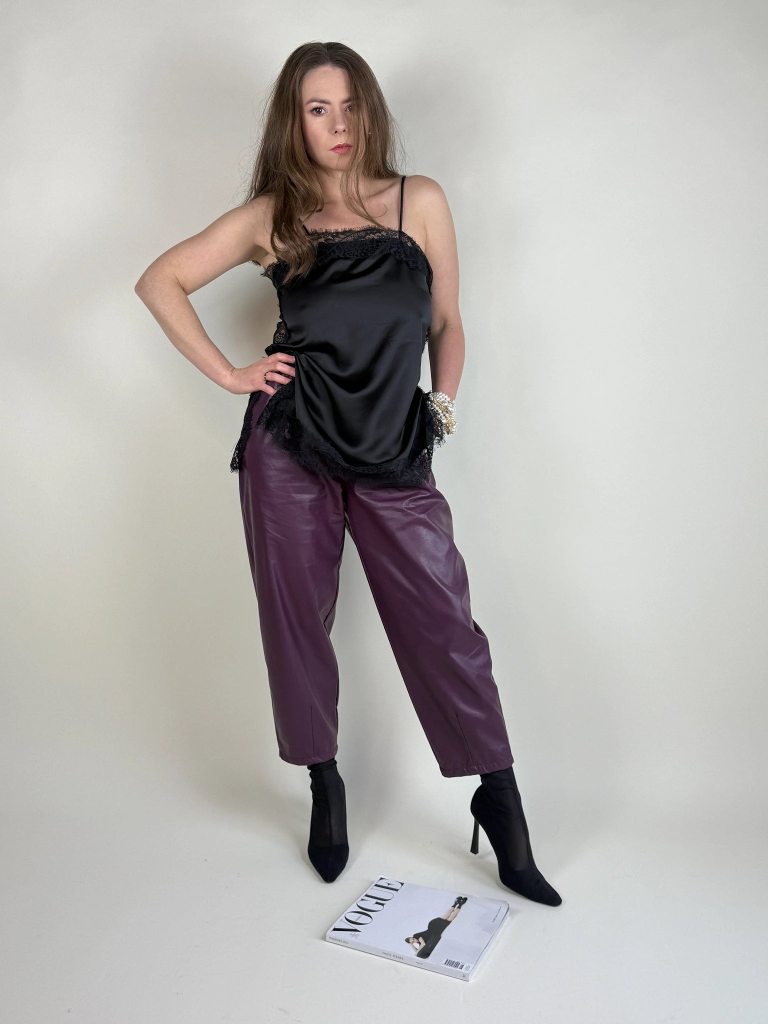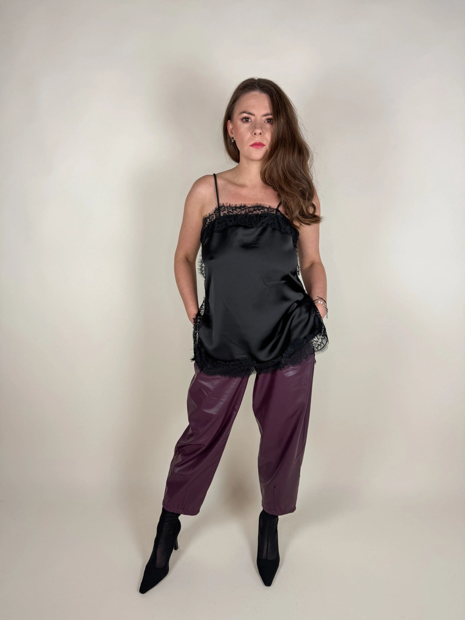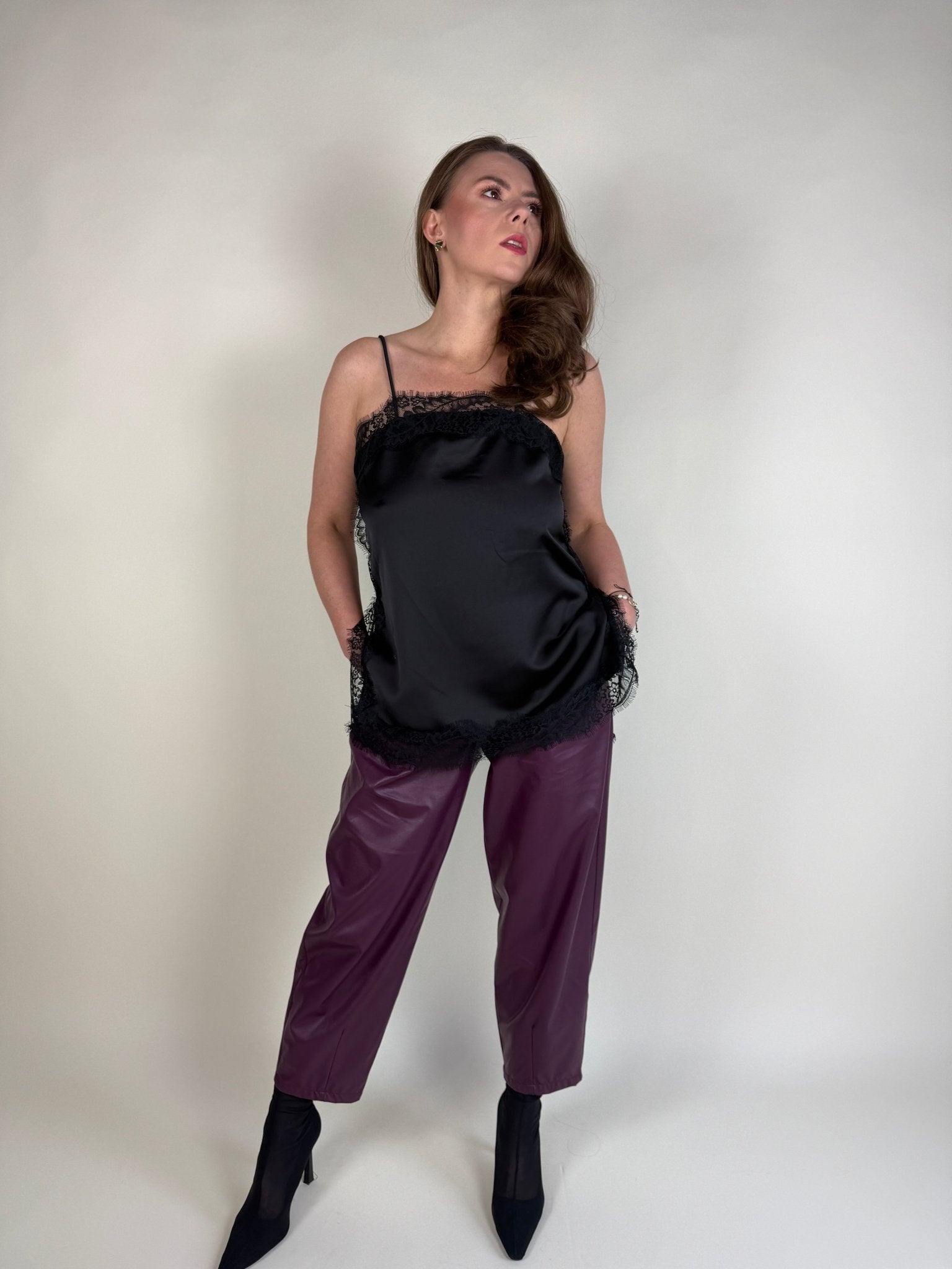 SPODNIE LEA Z EKOSKÓRY ŚLIWKA