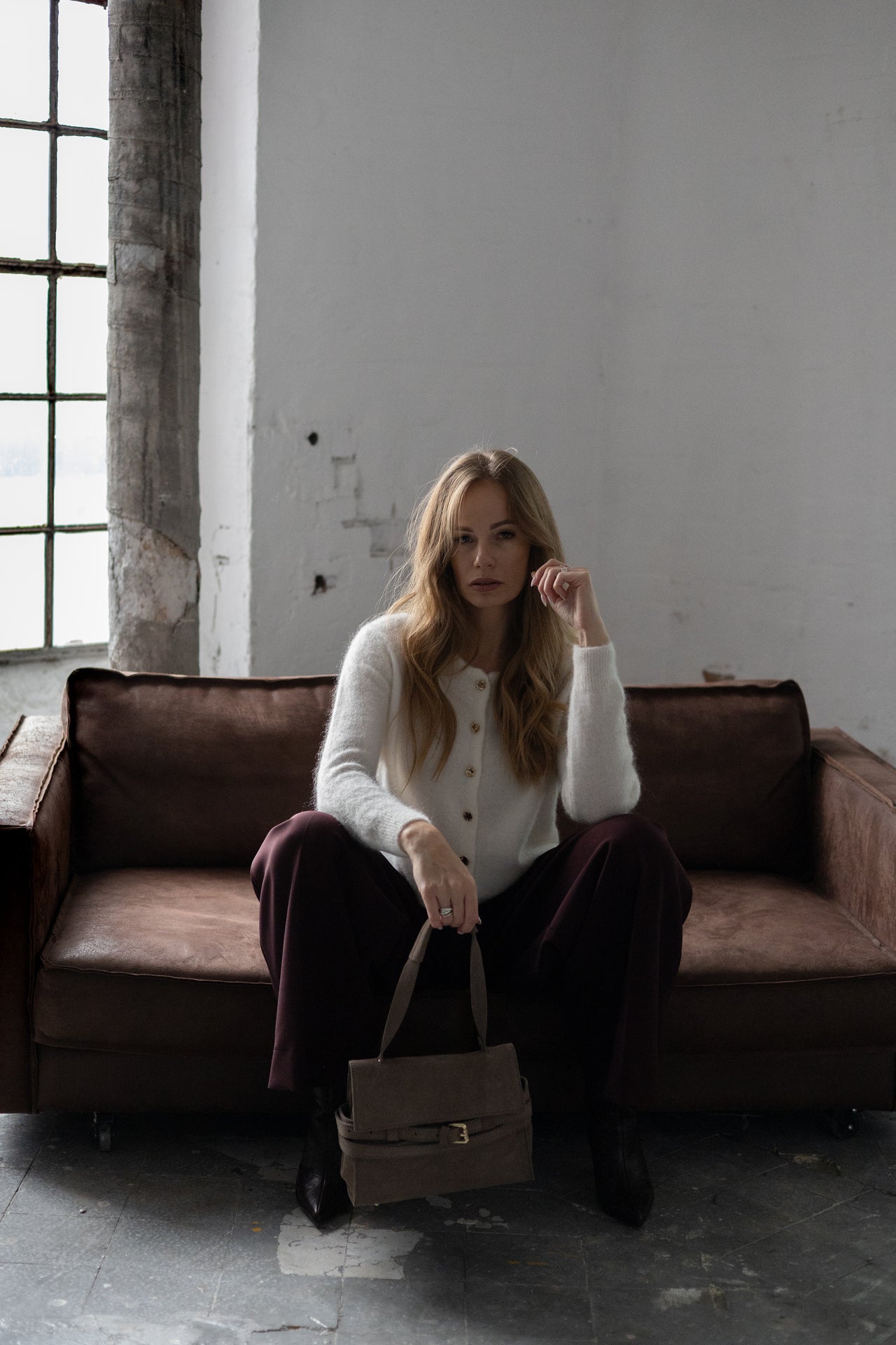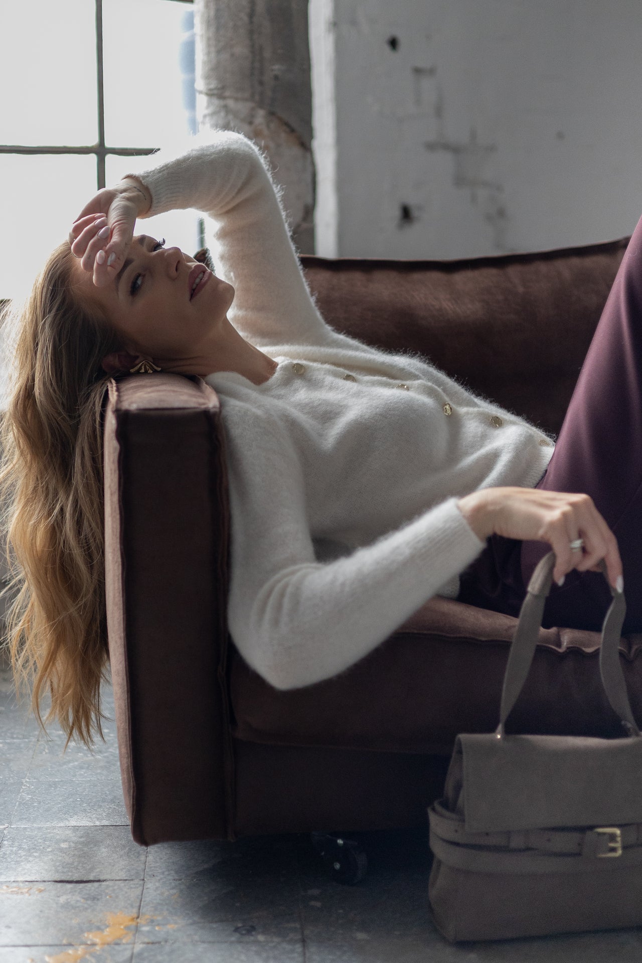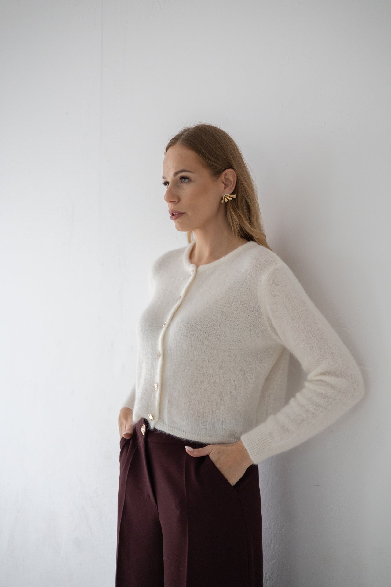 SWETER SANTI ŚMIETANKOWY Z SUPER KID MOHERU I WEŁNY MERINO